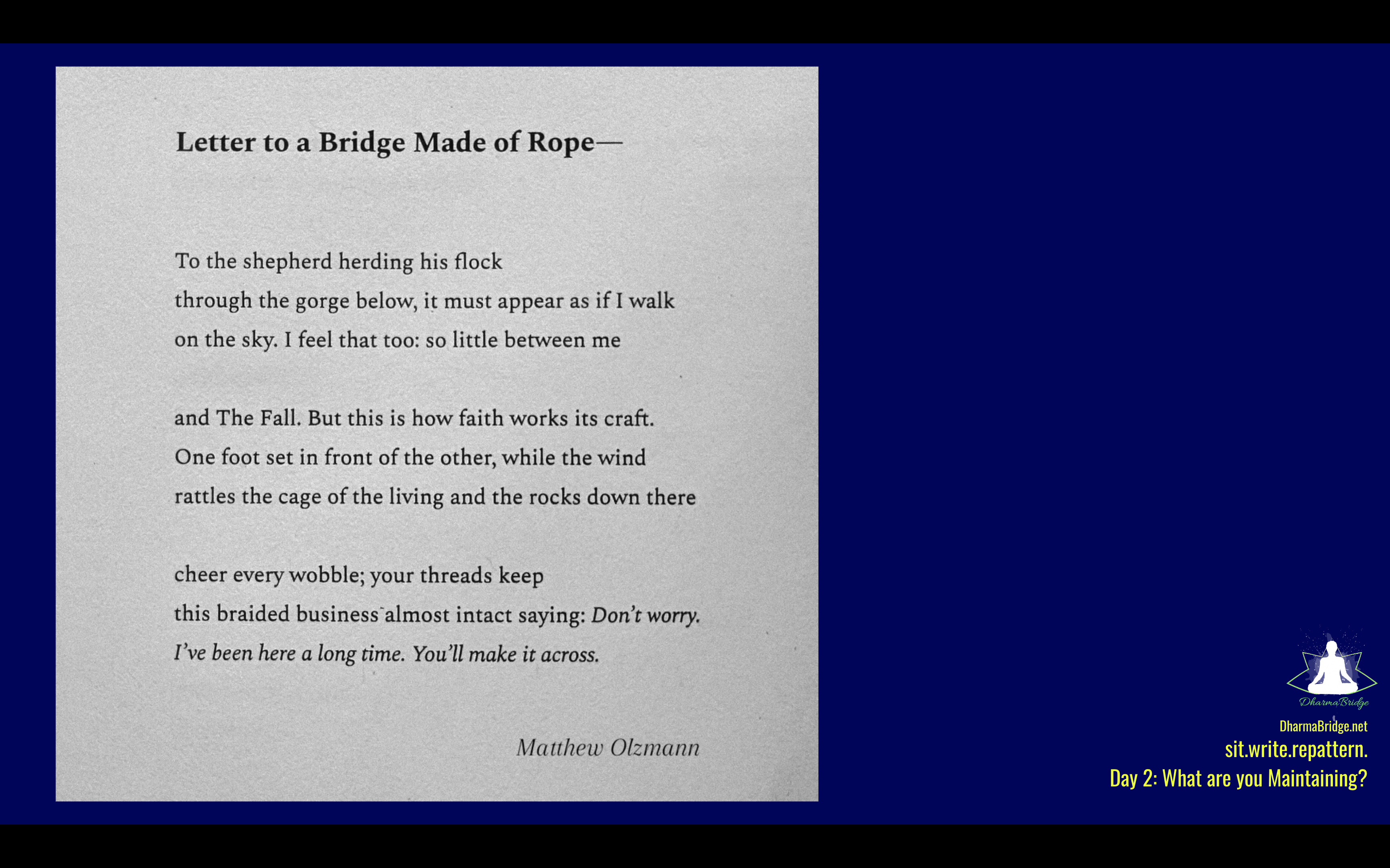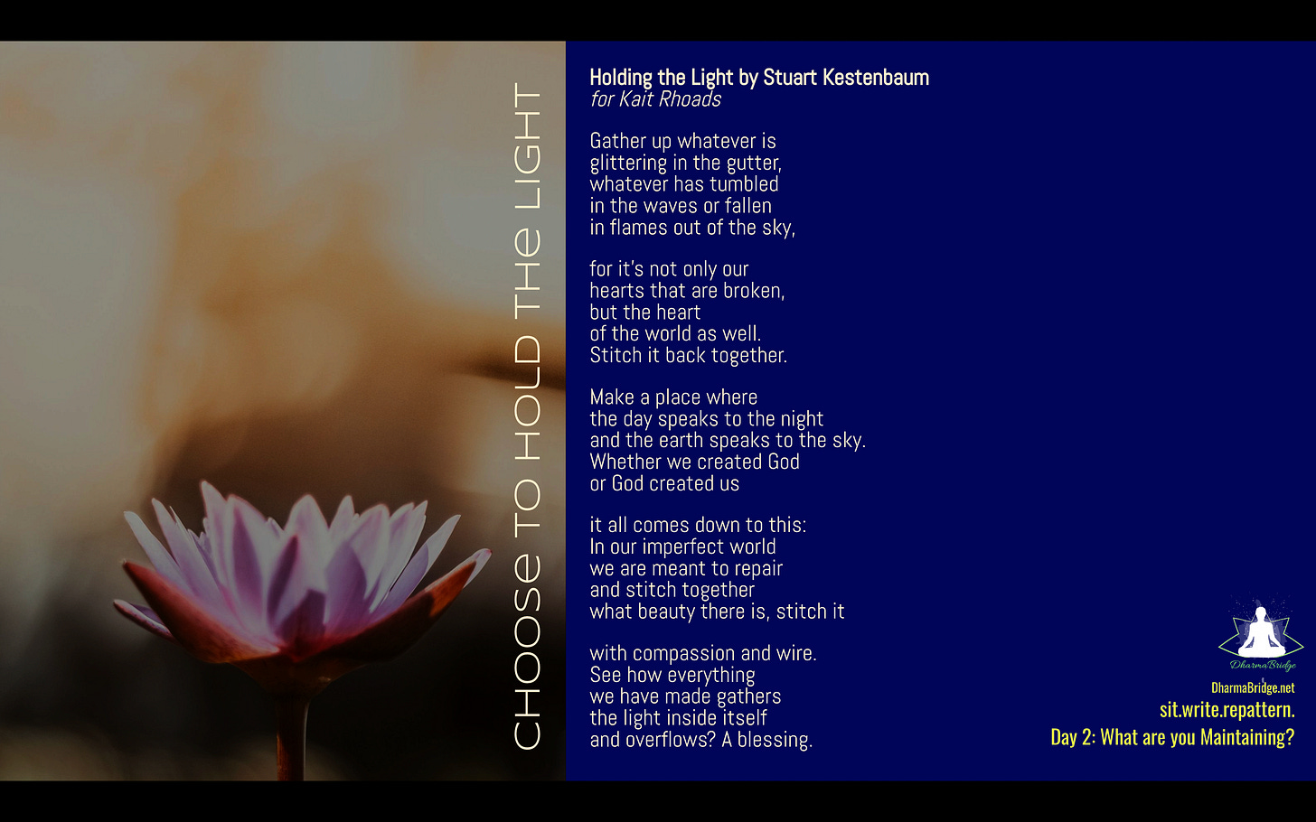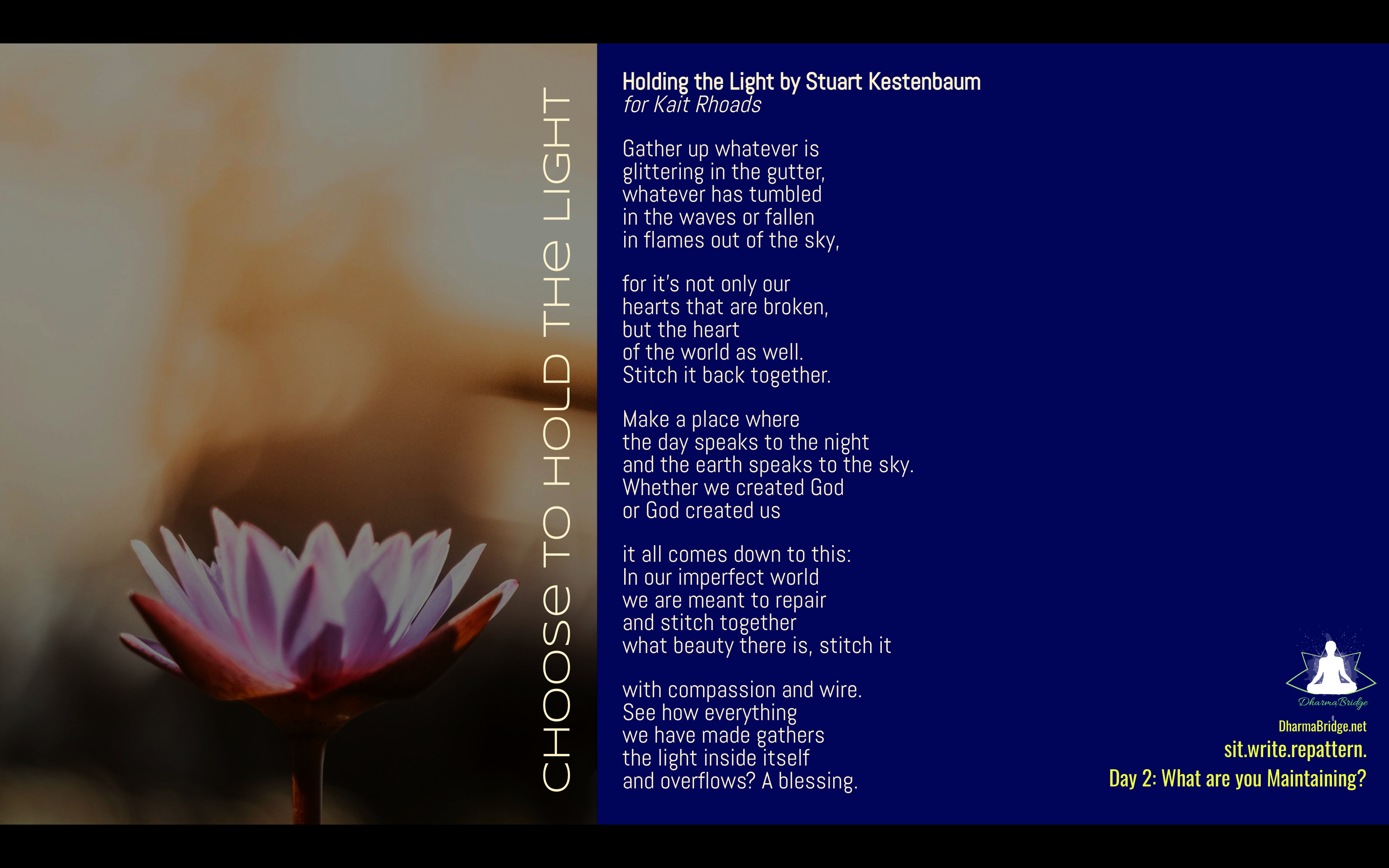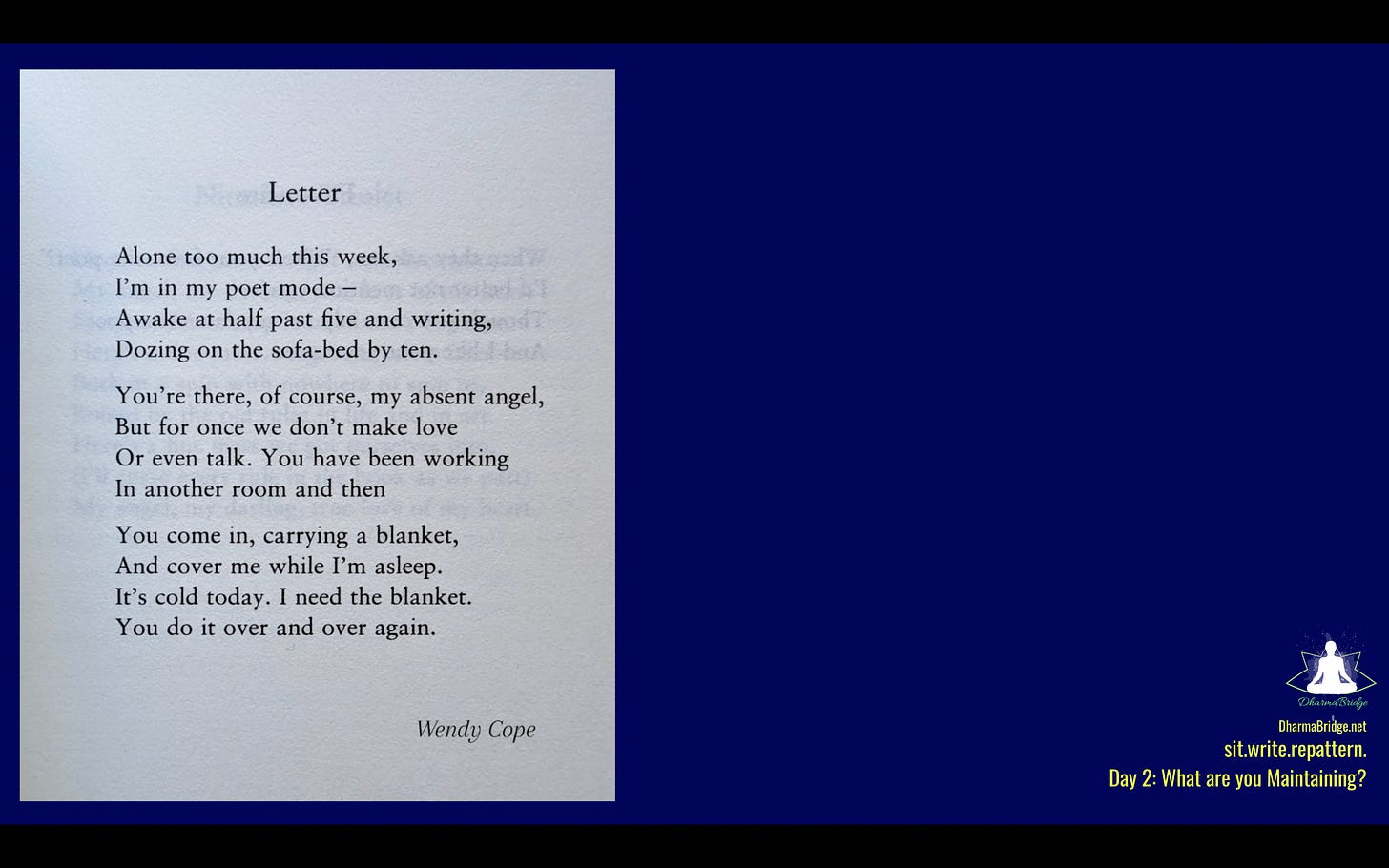 sit.write.repattern. What are you Maintaining?Poems and Prompts from Day 2 of sit.write.repattern.Kelly BlaserMar 02, 20252ShareKelly’s Substack is a reader-supported publication. To receive new posts and support my work, consider becoming a free or paid subscriber.SubscribeShare